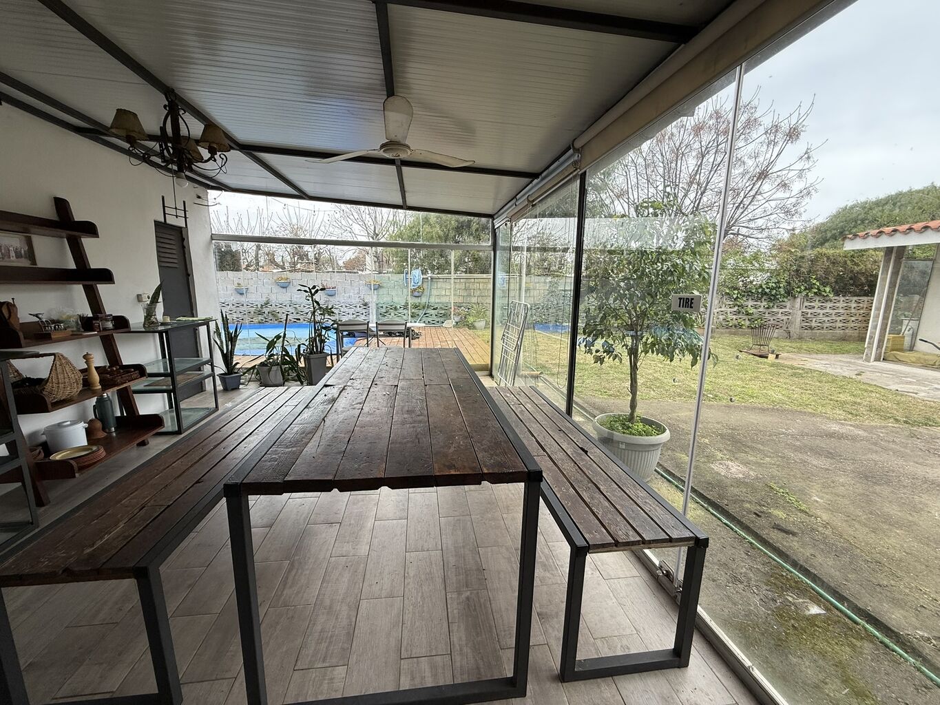 En el exterior, disfrutarás de una cochera techada y un generoso jardín al frente y al fondo. Este espacio verde incluye una piscina y ofrece amplias posibilidades para incorporar áreas sociales, como una barbacoa, ideal para el disfrute en familia y con amigos.