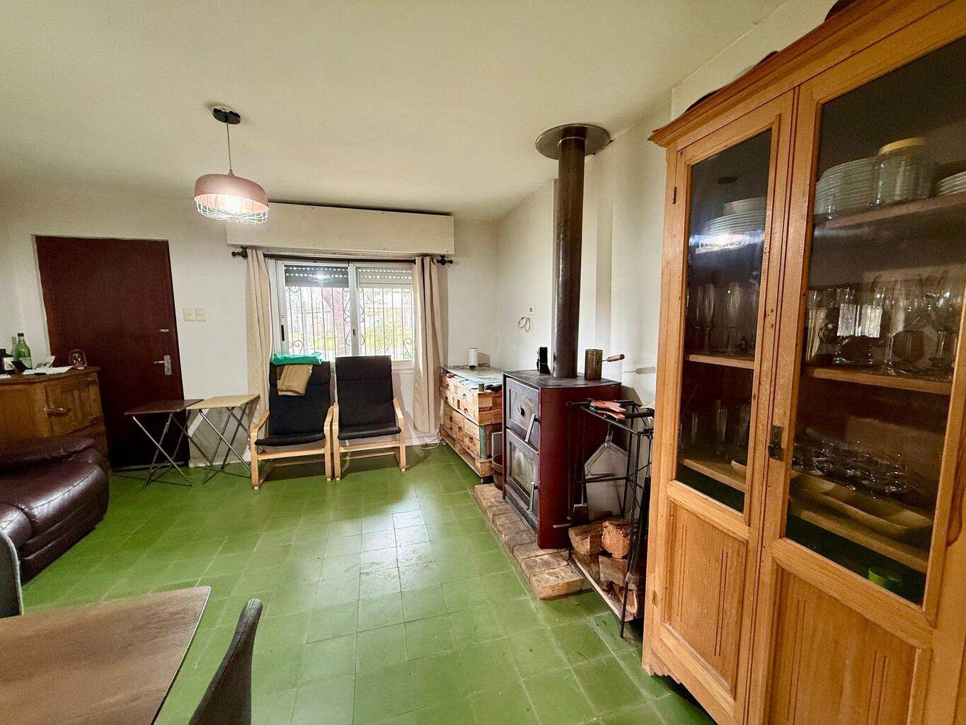 • Living comedor con estufa a leña, creando un ambiente cálido y acogedor