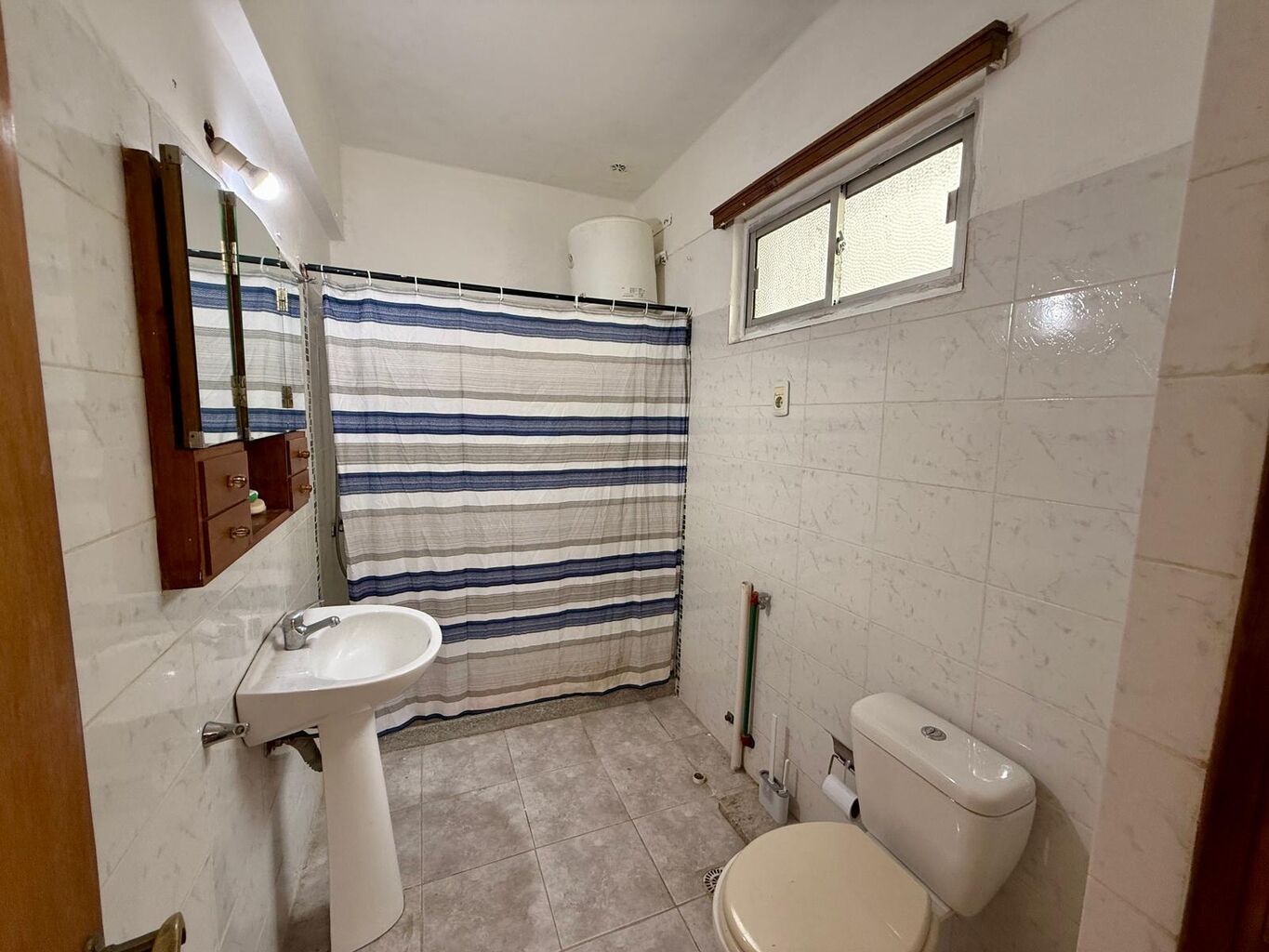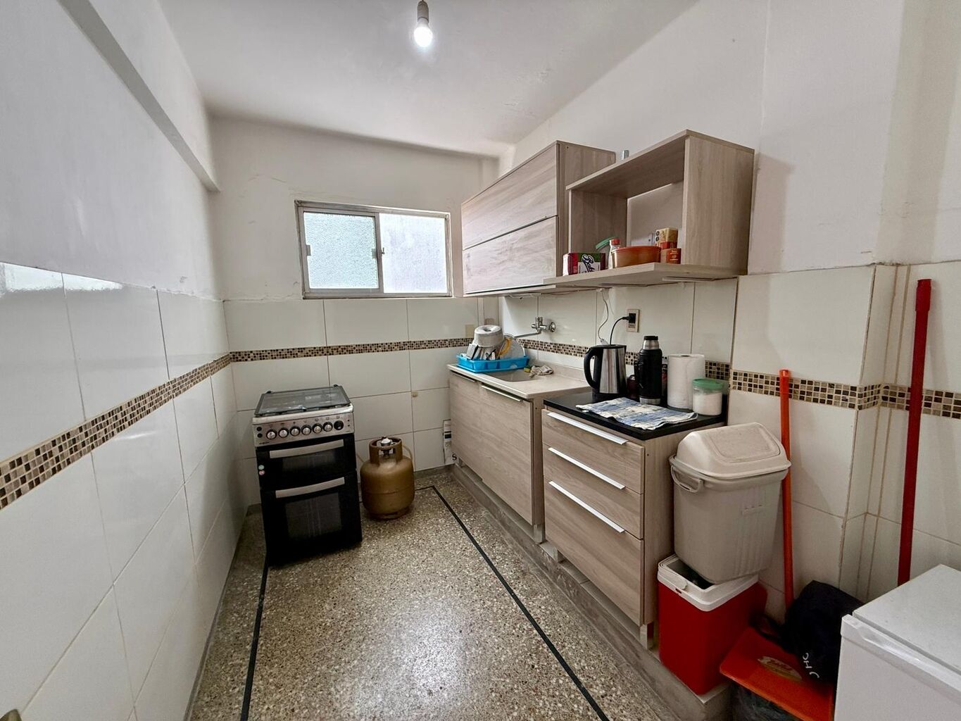 Apartamento con amplio dormitorio, baño completo y cocina definida.