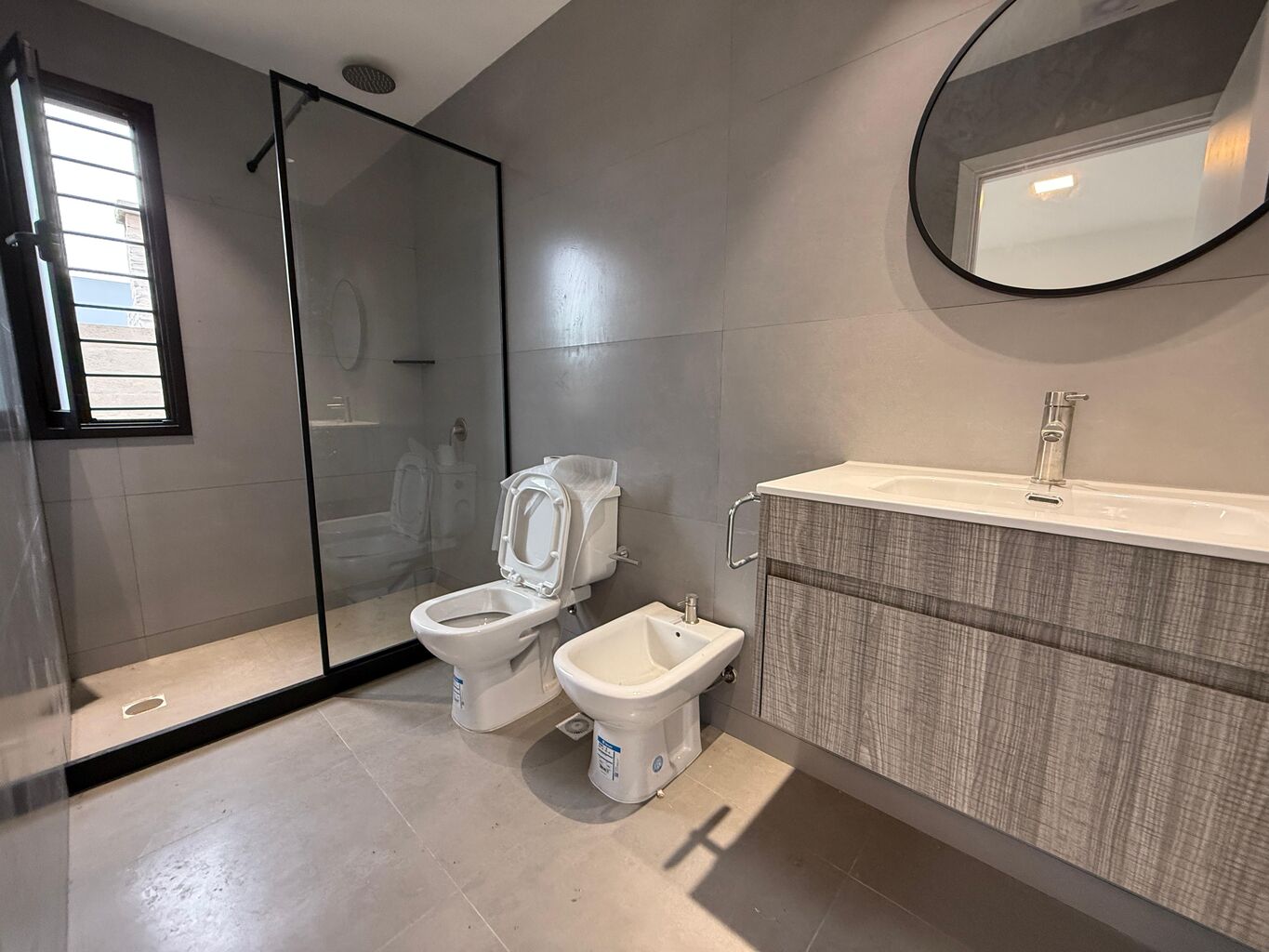 Los baños, ambos con revestimientos de piso a techo, ventilación natural en el suite y extractores eléctricos en ambos. El baño suite incluye mampara fija en vidrio templado .